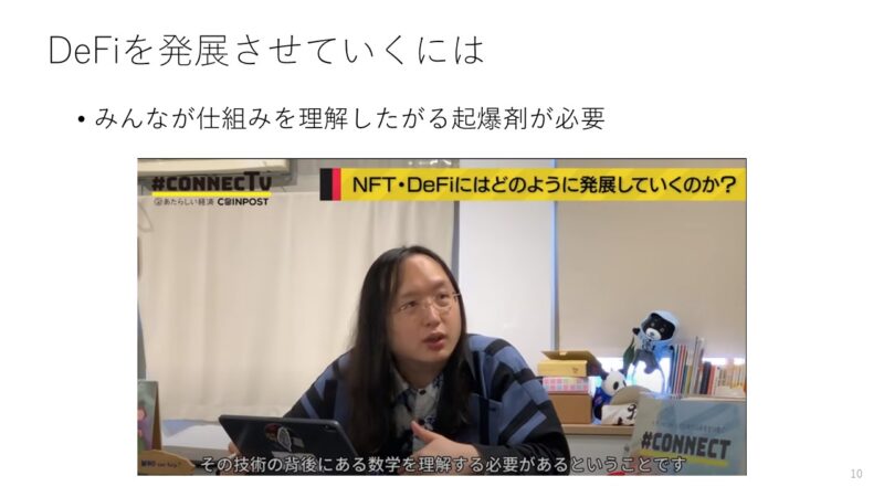 - DeFiを発展させるためには、みんなが仕組みを理解する必要がある