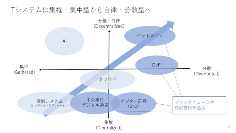 ITはここ十数年、自律・分散型へのトレンドが続いており、ブロックチェーンもその中の主要な一つの技術基盤だとみなすことができると思っています。